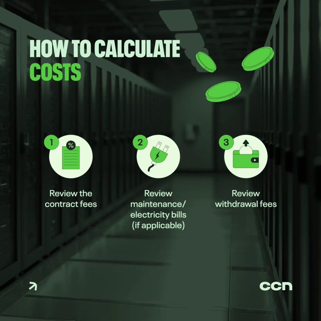 Costs and Fees in Cloud Mining Contracts